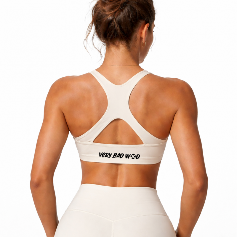 The brassière sport femme Anna is now available in a cream white color for a bright and refined training look. This soft and premium shade enhances your outfit while maintaining the performance DNA of Very Bad Wod. Designed for committed athletes, this versatile brassière sport supports you through Cross Training, Fitness, weightlifting, yoga and CrossFit®.